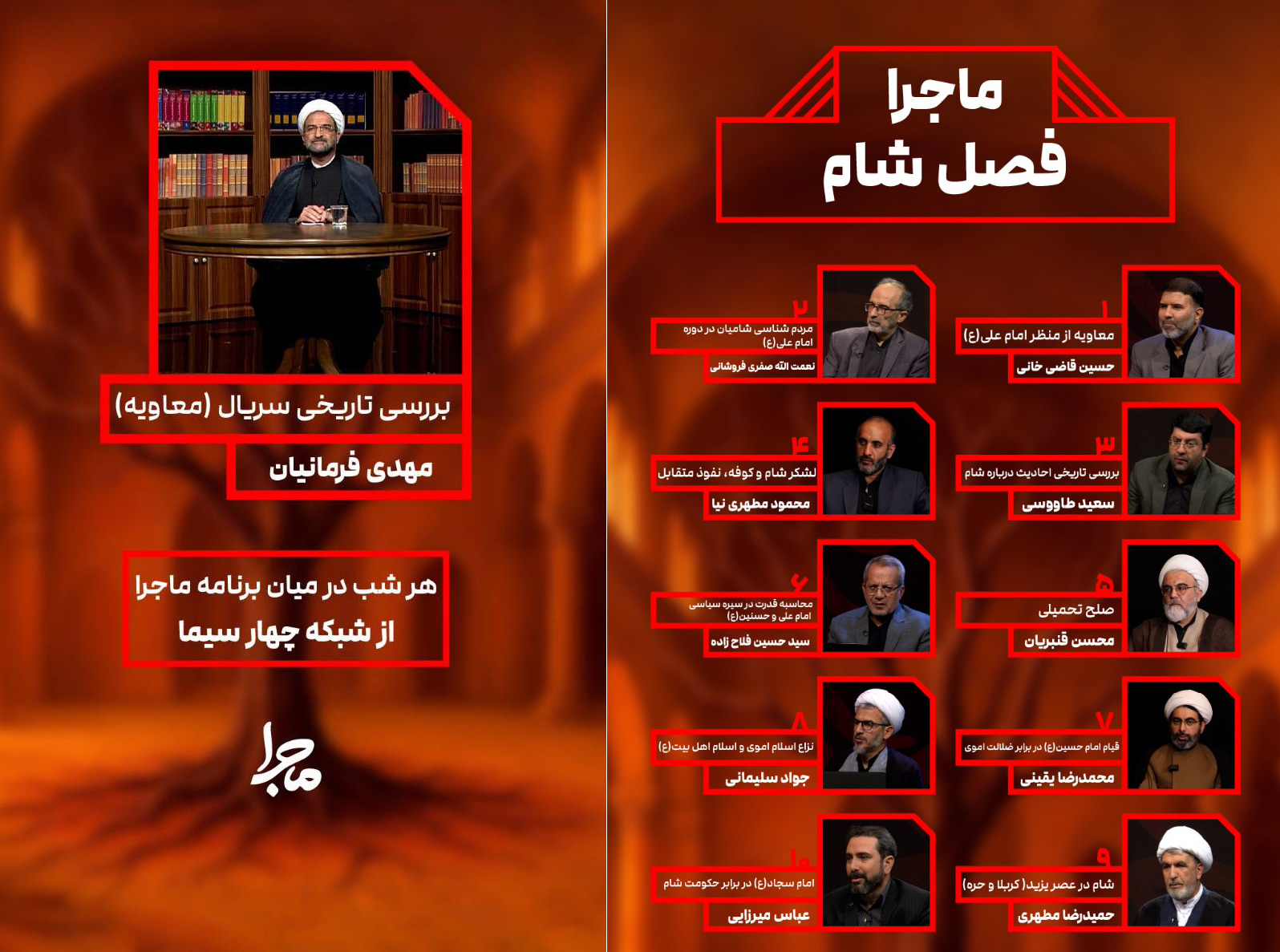 همچنین بررسی تاریخی سریال تلویزیونی معاویه در قالب میان برنامه در این فصل توسط مهدی فرمانیان انجام می شود.