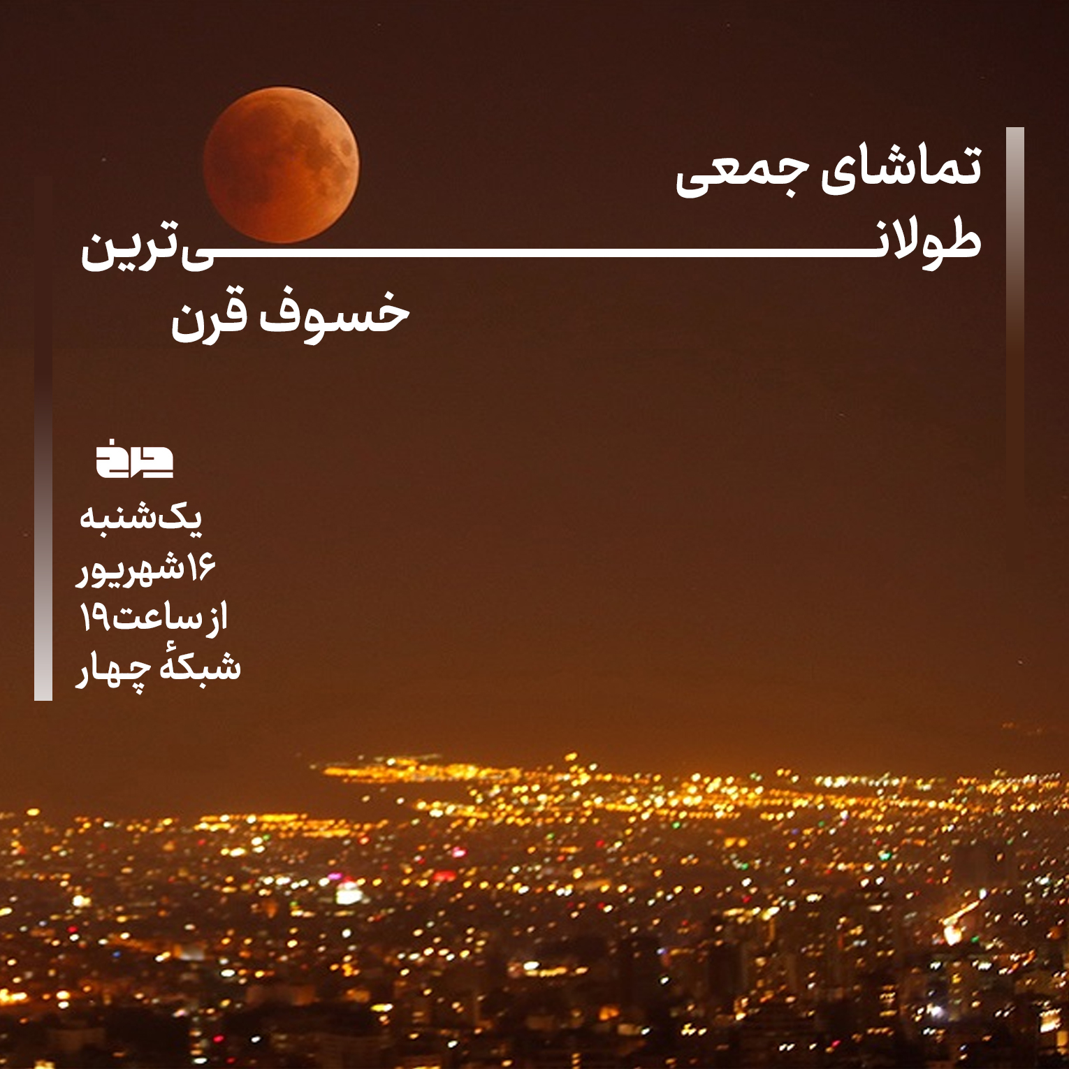 «چرخ» به تهیهکنندگی فرزام محبی، اجرای محمد خاکساری و سردبیری پویا پاکنژاد کاری از گروه علم و فناوری شبکهٔ چهار، یکشنبه تا سهشنبه ساعت ۱۹ پخش میشود که اینبار بهصورت ویژه در یکشنبه ۱۶ شهریور از ساعت ۱۹ به پوشش خسوف خواهد پرداخت.